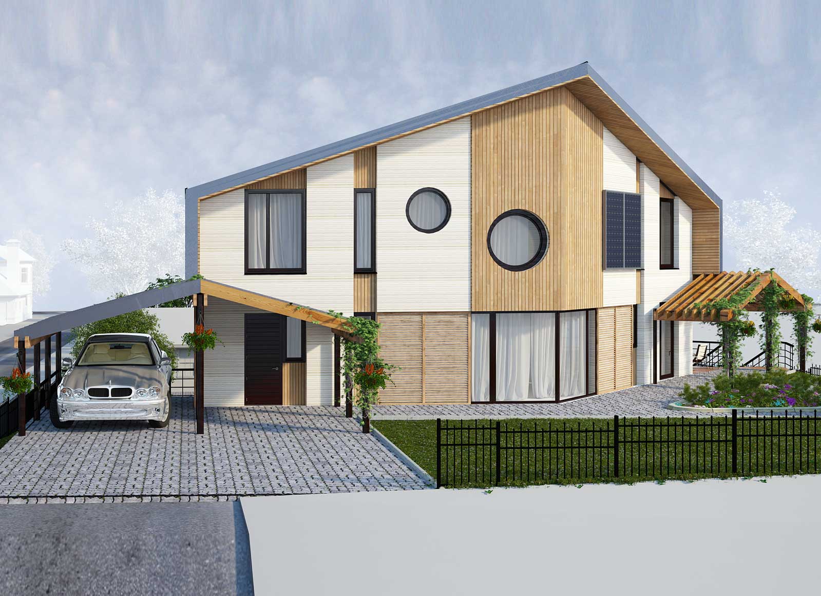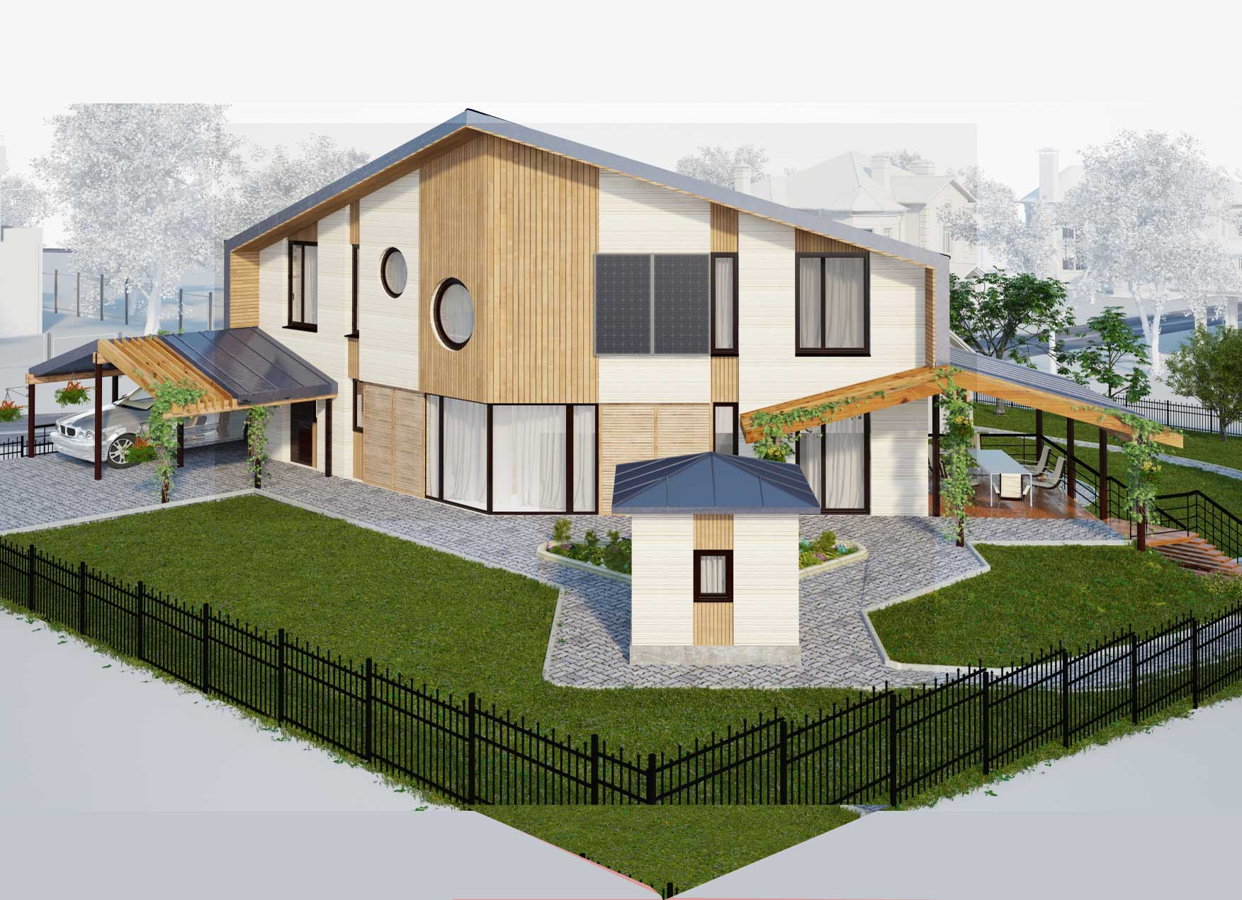 The orientation of the building taken in light of the maximum possible energy saving effect of insolation. More "panoramic" windows brought to the southern and south-eastern facades mobile device with wooden louvres and "pergola" performing solar control on hot summer days.